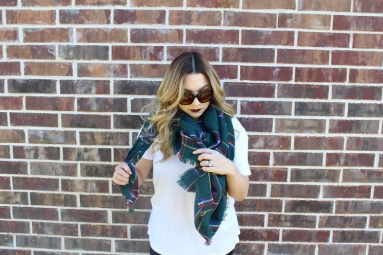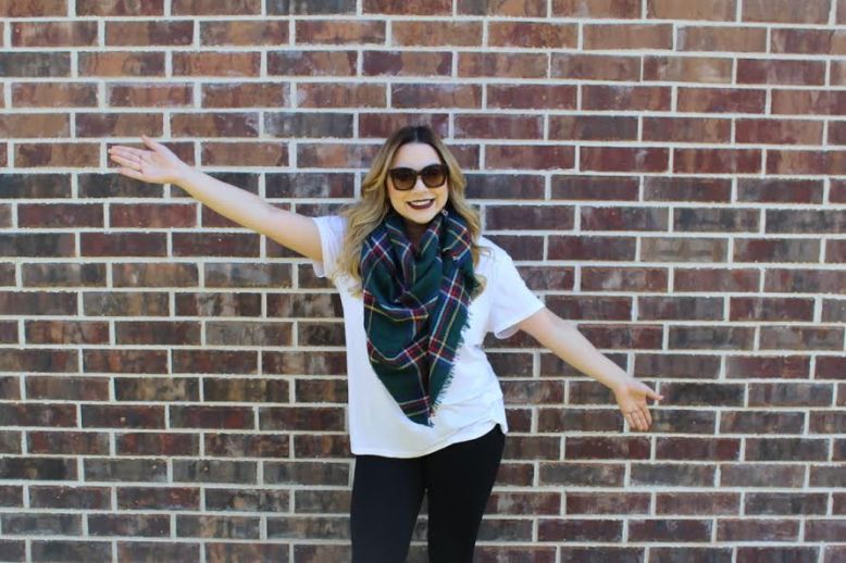 Let’s talk about how to tie a blanket scarf, shall we? I have a feeling this trend will be very popular again this Fall and Winter season, and if you haven’t tried it already you’re missing out! This is one of my favorite ways to layer on top of basics to add a fun Fall festive touch.