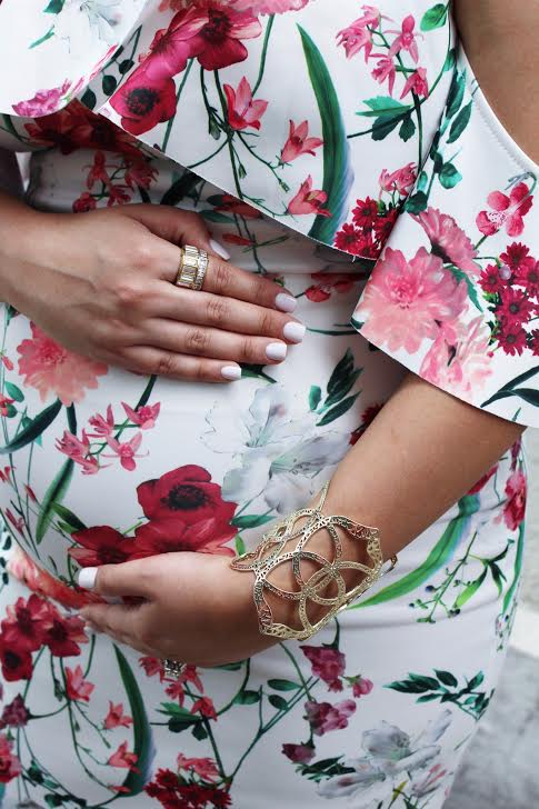 I recently wore this dress to a close family friend of mine quinceanera. This dress is not maternity, but it is so comfortable for a growing bump and I adore the cut out sleeves. I paired this dress with some fun bold accessories that will be listed below. I thought I sized up on this dress, but looking at the tag again I did purchase the small. The material gives enough stretch to still feel comfortable, but of course try two sizes on if your are hesitant.